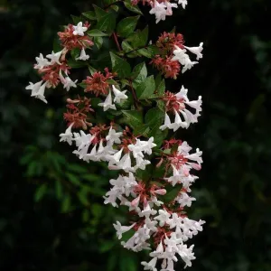L’abélia séduit par son port souple et arrondi, atteignant généralement 1,5 à 2 mètres de hauteur, ce qui le rend idéal pour les petits jardins, les haies basses, les massifs fleuris ou la culture en pot sur terrasse. Son feuillage, semi-persistant à persistant selon le climat, est souvent lustré, vert foncé ou panaché, et prend parfois de jolies teintes cuivrées à l’automne. Les petites feuilles ovales restent décoratives toute l’année, même en hiver doux.