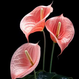 L’anthurium se distingue par son inflorescence composée d’une grande spathe lustrée, souvent en forme de cœur, qui entoure un spadice central jaune ou crème. La spathe, parfois nervurée, offre une palette de couleurs impressionnante : rouge vif, rose, blanc, vert, orange, saumon, chocolat ou même bicolore selon les variétés. Cette floraison, qui peut durer plusieurs semaines, illumine et dynamise les intérieurs, que ce soit en pot ou en bouquet.