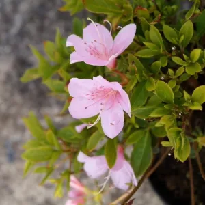 L’azalée séduit par son port compact et arrondi, ses petites feuilles vert foncé luisantes et surtout par ses fleurs en entonnoir, regroupées en bouquets denses qui recouvrent littéralement la plante lors de la floraison. Les azalées du Japon, à feuillage persistant, gardent leur aspect décoratif toute l’année, tandis que les variétés caduques offrent un superbe feuillage automnal avant de perdre leurs feuilles.