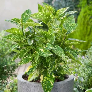 L’Aucuba japonica ‘Crotonifolia’ est un arbuste persistant, robuste et décoratif, idéal pour illuminer les zones ombragées du jardin ou de la terrasse. Son feuillage panaché, ses baies rouges hivernales et sa grande tolérance aux conditions difficiles en font une valeur sûre, facile à vivre et durable, pour tous les espaces verts.