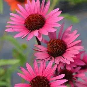 Echinacea purpurea (rudbeckie pourpre) : la plus courante, fleurs roses à cœur orange.