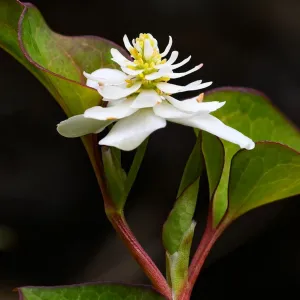 De juin à août, l’Houttuynia grand se pare de petites fleurs blanches, regroupées en courts épis, entourés de bractées blanches qui ressemblent à des pétales. Si la floraison reste discrète comparée au feuillage, elle apporte néanmoins une touche de raffinement supplémentaire à la plante.