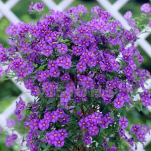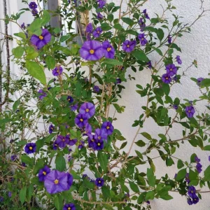 Outre sa floraison spectaculaire, le Solanum rantonnetii offre un feuillage décoratif et parfois, en fin de saison, de petites baies décoratives (non comestibles). Sa croissance rapide et sa facilité d’entretien en font un allié précieux pour structurer le jardin et apporter de la couleur sur une longue période.