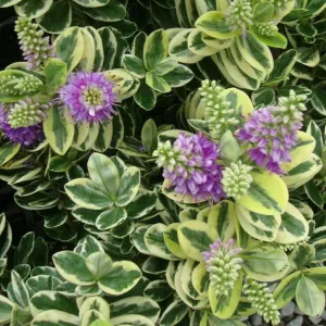 La plupart des véroniques en pot de 15 cm sont persistantes, gardant leur feuillage vert lustré toute l’année. Certaines variétés présentent des feuilles panachées, argentées ou marginées de pourpre, ajoutant une note décorative même hors floraison. Le feuillage dense forme un coussin compact, parfait pour masquer le pied des autres plantes ou structurer une composition florale.