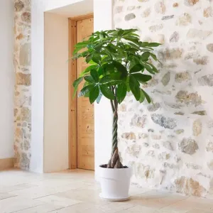 Le pachira aquatica, surnommé « arbre à monnaie » ou « châtaignier de Guyane », est une plante d’intérieur très appréciée pour son allure exotique, son tronc souvent tressé et son feuillage élégant en forme d’étoile. Originaire d’Amérique centrale et du Sud, il s’est imposé comme une star des salons et bureaux grâce à sa facilité d’entretien et à sa croissance rapide.